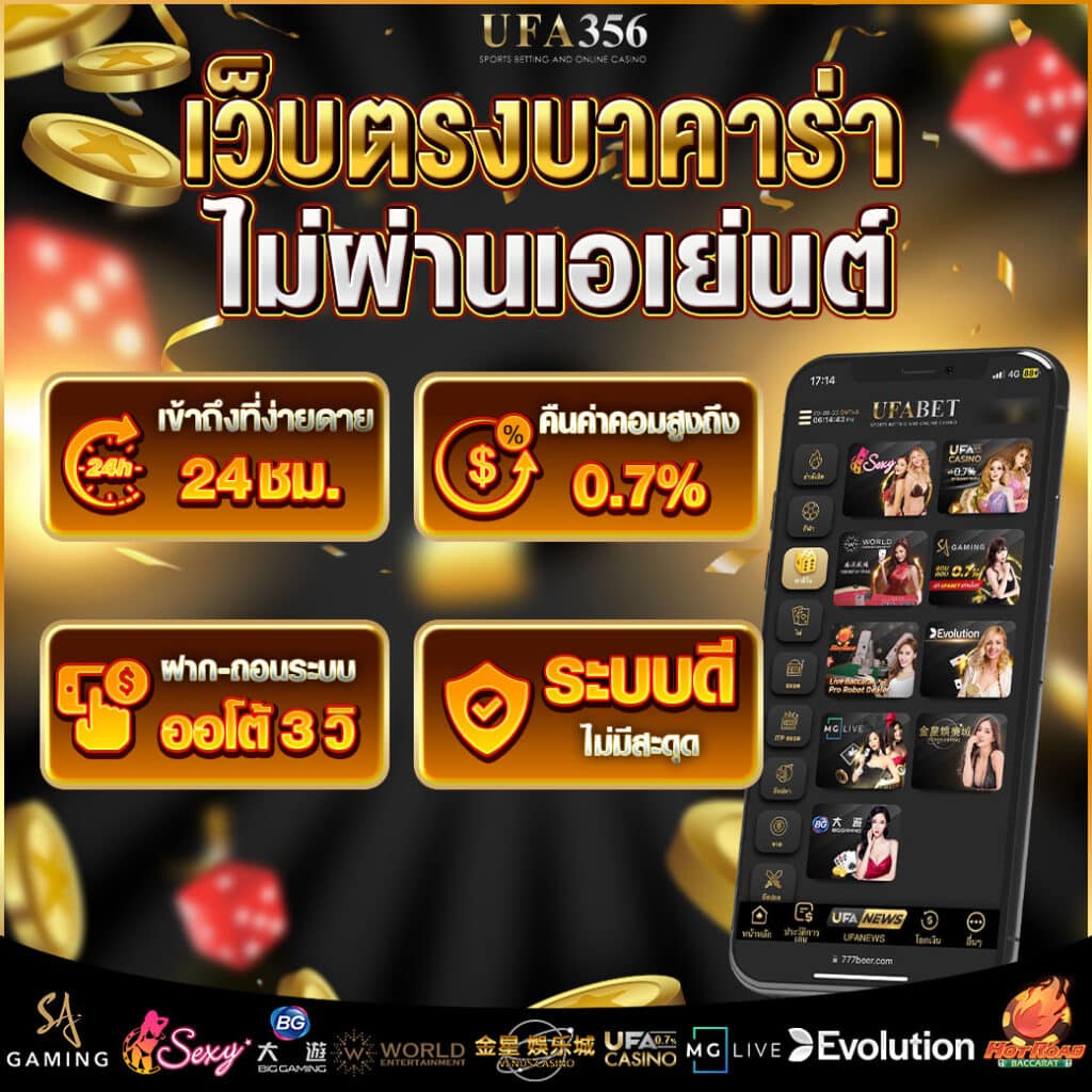 นอกเหนือจากเกมกีฬา UFA356 ยังยกอาณาจักร คาสิโนออนไลน์ ระดับพรีเมียมมาไว้ในมือคุณ เราจับมือกับพันธมิตรค่ายเกมชั้นนำระดับโลก อาทิ SA Gaming, Sexy Baccarat และ Evolution Gaming เพื่อมอบประสบการณ์การเล่น คาสิโนสด (Live Casino) ที่สมจริงที่สุด ผ่านการถ่ายทอดสดจากคาสิโนจริงในต่างประเทศ ผู้เล่นจะได้สัมผัสบรรยากาศการเดิมพันระดับ 5 ดาว พร้อมดีลเลอร์สาวสวยคอยให้บริการตลอด 24 ชั่วโมง โดยไม่ต้องเสียเวลาเดินทางไกล ช่วยให้การสร้างรายได้เสริมจาก บาคาร่าออนไลน์ กลายเป็นเรื่องที่เข้าถึงง่ายและสะดวกสบายผ่านมือถือเพียงเครื่องเดียว